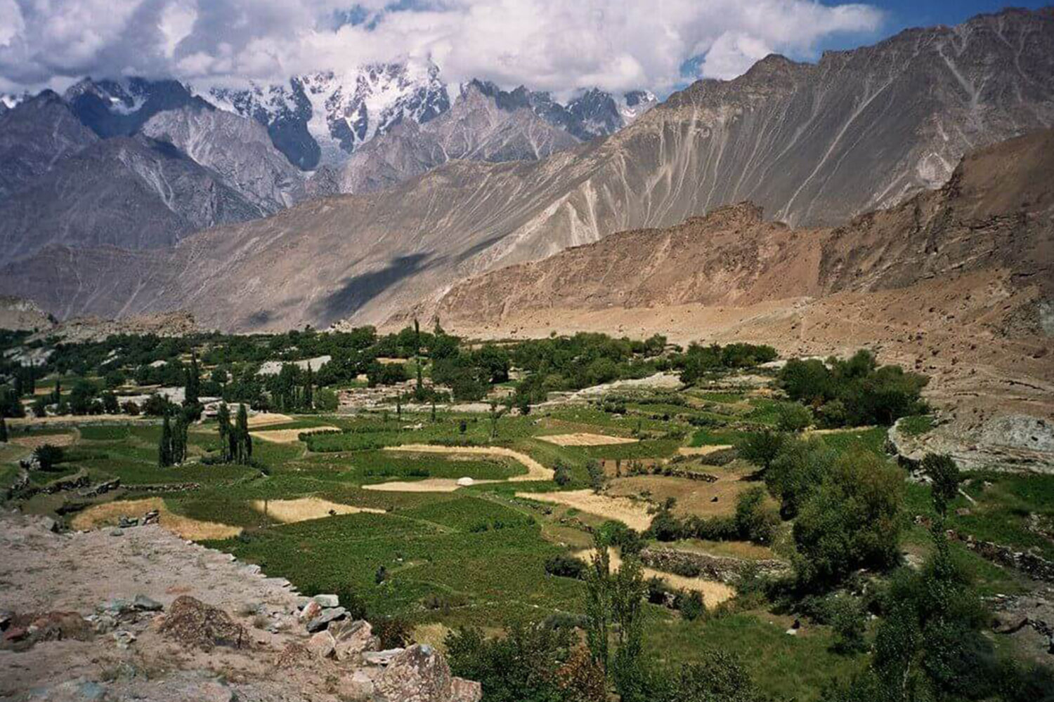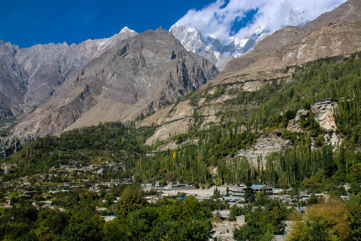 Travel along the Karakoram Highway, following the Indus River until you meet the Hunza River. Cross charming villages and mountain bridges before arriving in Karimabad, the heart of Hunza, for an overnight stay.